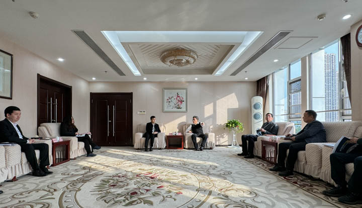 1月23日下午,蔡捷思董事一行在武汉与长江产业投资集团党委书记、董事长黎苑楚举行座谈,就双方产业优势及合作前景进行深入交流。