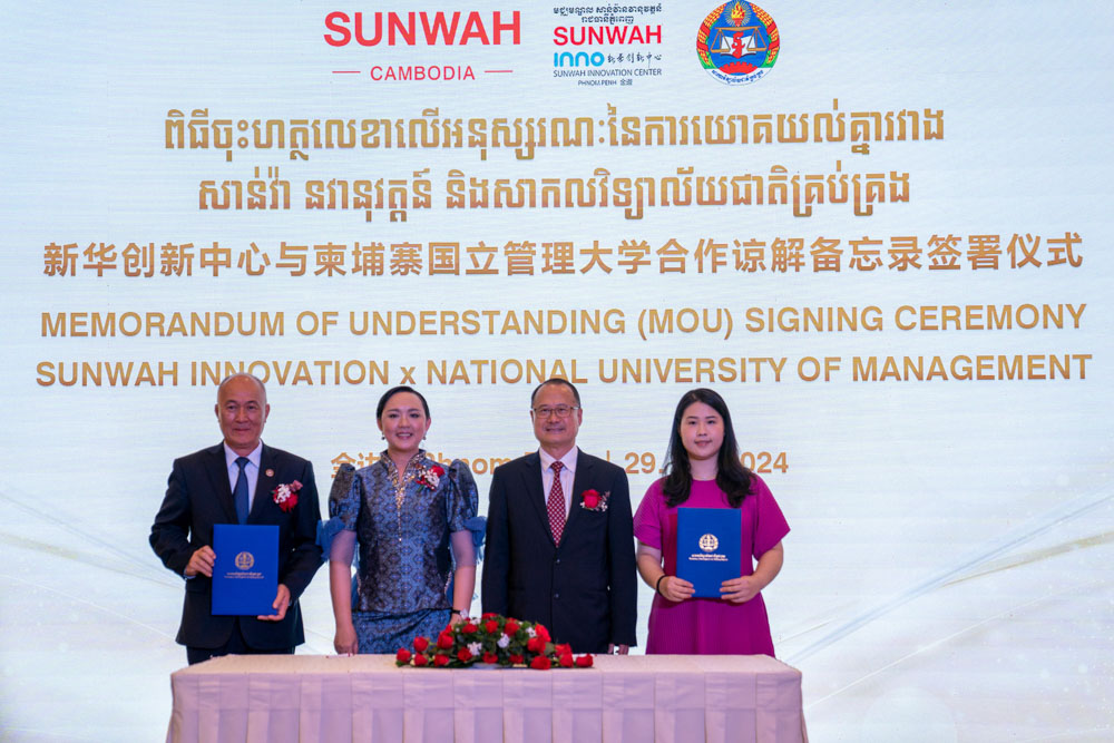 开幕礼上,新华集团与柬埔寨国立管理大学签署了为期5年的合作备忘录,以促进文化、创新、科技的长期交流和合作,内容涵盖交流研讨等培训项目。蔡冠深文化中心和新华创新中心由新华集团捐赠,位于金边市中心的柬埔寨国立管理大学内,中心设有活动厅、创意实验室、会议室、贵宾室和共享空间,对学生、教育工作者、创业者、初创公司以及非牟利组织免费开放,为培育与萌发创新思维、文化交流活动等提供场地和交流机会。