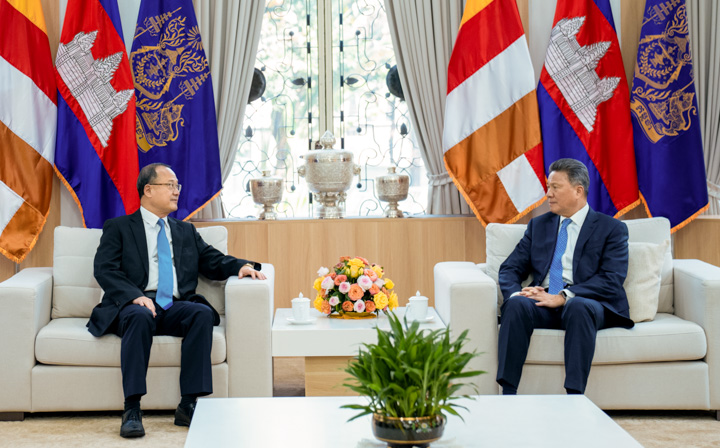 4月5日下午,柬埔寨副首相兼柬埔寨发展理事会第一副主席、中柬政府间协调委员会柬方联合主席孙占托,在发展理事会会见全国政协常委、粤港澳大湾区企业家联盟主席、香港中华总商会会长、新华集团主席蔡冠深博士一行,双方就大湾区与柬埔寨合作及绿色能源、产业园区等进行深入交流。