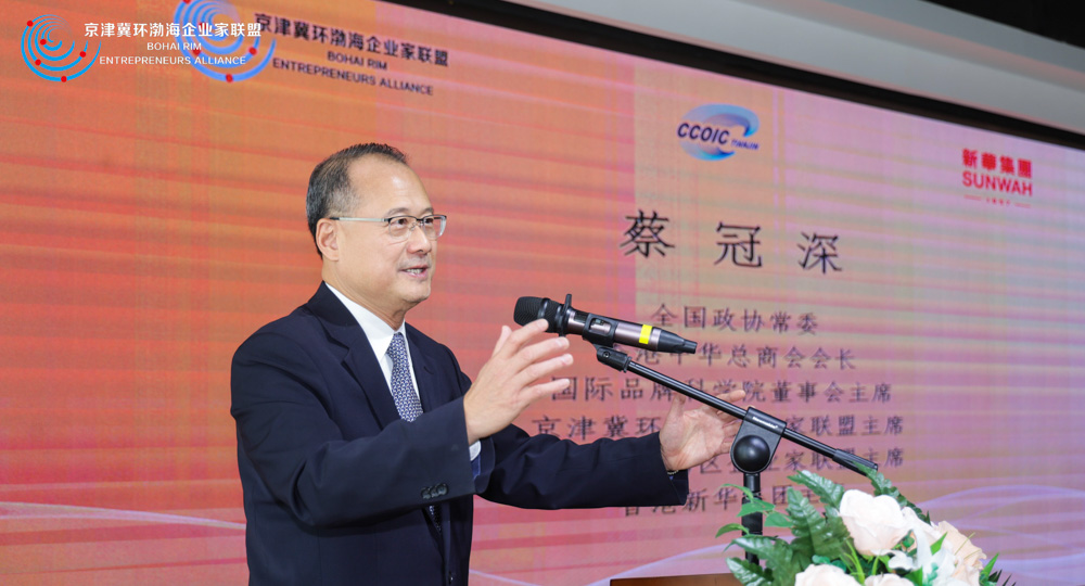 全国政协常委、粤港澳大湾区企业家联盟主席、香港中华总商会会长、京津冀环渤海企业家联盟主席、国际品牌科学院董事局主席、香港新华集团主席蔡冠深博士,天津市工商业联合会主席、天津市总商会会长娄杰,中国国际商会天津商会会长唐小文,天津市商务局副局长李建,山东省政协常委、青岛市委原常委、原副市长、青岛市企业联合会党委书记薛庆国,天津市和平区副区长徐志强等出席。