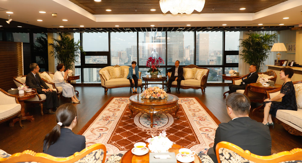 2025年6月25日晚,全国政协常委、新华集团主席蔡冠深博士邀请香港特区第五任行政长官、大紫荆勋贤林郑月娥女士莅临新华集团东北总部考察。林郑月娥女士高度评价蔡冠深博士的家国情怀,并就促进文化教育交流、企业社会责任、辽港教育科技合作等话题深入交流。
