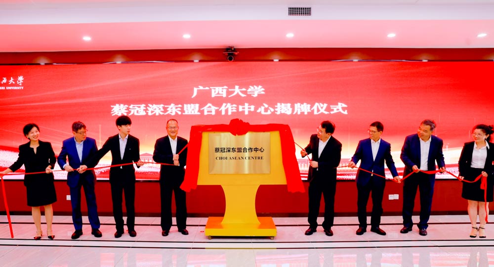 会后,广西大学校党委常委、副校长肖建庄与新华集团东南亚区域总裁蔡卓思代表双方签署了《香港新华集团与广西大学合作协议》。蔡冠深、李国忠见证签约并为广西大学“蔡冠深东盟合作中心”揭牌。