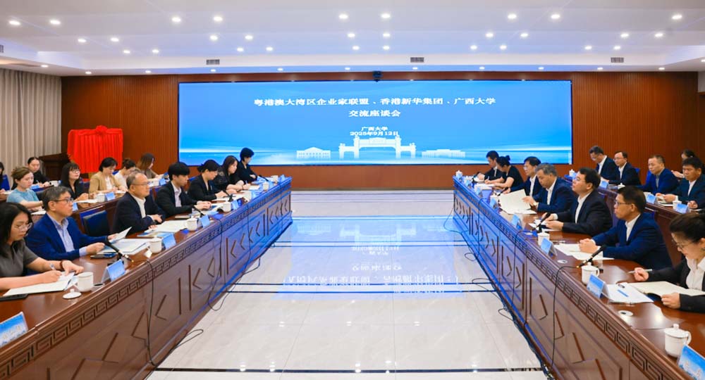 2025年9月12日,全国政协常委、新华集团主席蔡冠深博士一行23人访问广西大学,广西大学党委书记李国忠热情接待访问团并举行座谈。